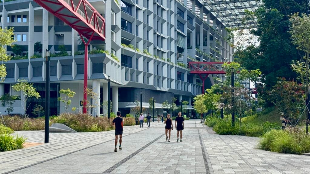 Collaboration was key. A series of design workshops with HDB, URA, LTA, and National Parks ensured alignment and adaptability, enabling the plan to evolve in response to shifting priorities over time. Implementation quickly followed, anchored by a new MRT station and bus interchange. At the heart of Punggol’s transformation, the Punggol Digital District (PDD) and Singapore Institute of Technology (SIT) form the vibrant core of a 24/7 community. Together with new housing, amenities, restaurants, a hawker market, and a hotel, they anchor a dynamic hub of 28,000 jobs, 12,000 students, and 2,200 academic staff. Waterfront boardwalks, heritage trails, parks, playgrounds, and lively dining spots complete a destination that’s green, connected, and distinctly Punggol.